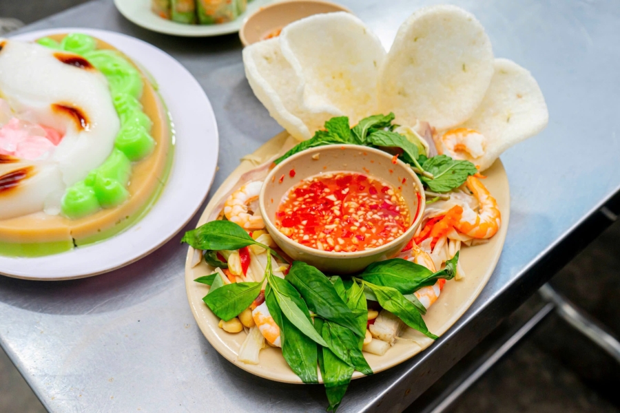 - Cà rốt, rau răm, hành tím, đậu phộng rang